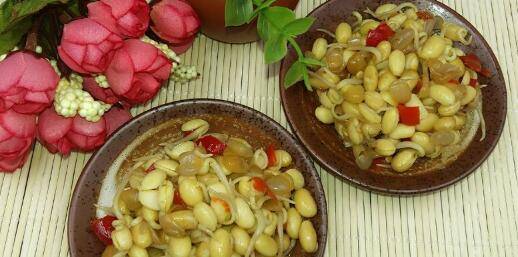 黄豆芽300g、剁辣椒适量、蒜末适量、盐、酱油、糖。