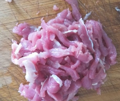 猪腰眉肉清洗干净,切成细丝,顺着纹路切防止碎掉。
