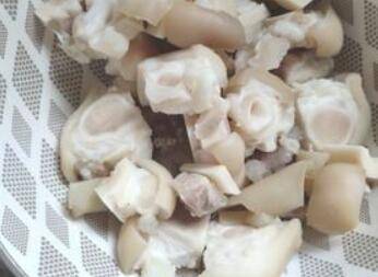 新鲜牛蹄一个,剁小块过水洗净,焯一下水。