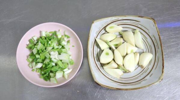 用料:鳗鱼1条、小葱1把、大蒜1头、红烧肉酱45克、植物油少许、热水1碗。