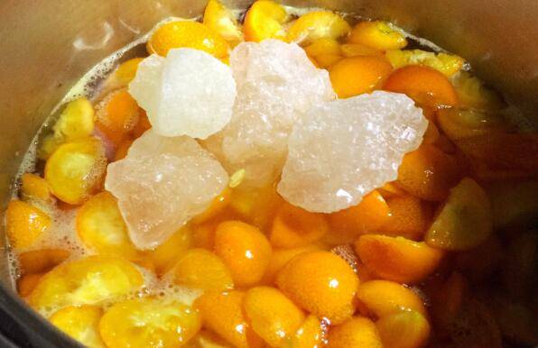 用料:金钱橘2000g、白砂糖100g、冰糖200g。