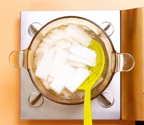 2、冬瓜条开水下锅,焯水一分钟。