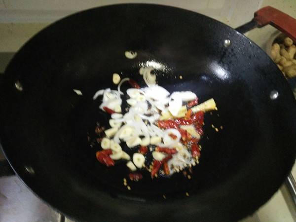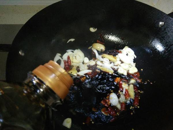 4、放配料炒香。