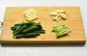 葱白葱绿分别切段,姜、蒜切片;剩下的生粉用水调成生粉水待用。