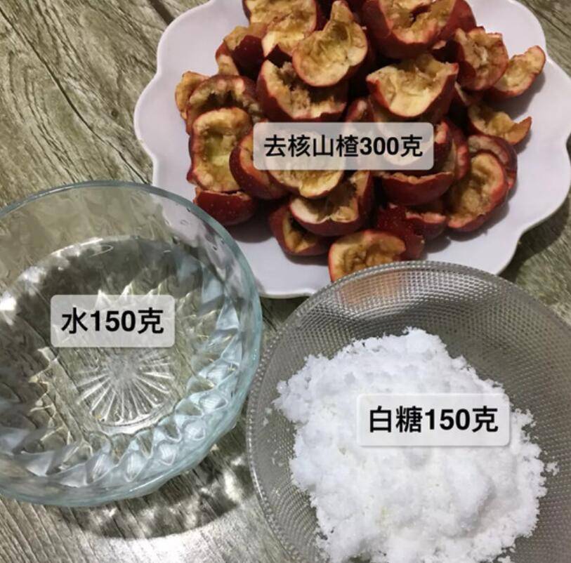 2、然后将山楂、白糖和水一起倒入锅中煮。