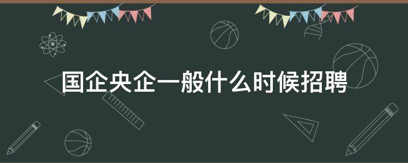 国企央企一般在每年的九月到次年的五月进行招聘,因为这个时间段是大学生面临毕业找工作的时间。国有企业,是指国务院和地方人民政府分别代表国家履行出资人职责的国有独资企业、国有独资公司以及国有资本控股公司,包括中央和地方国有资产监督管理机构和其他部门所监管的企业本级及其逐级投资形成的企业。