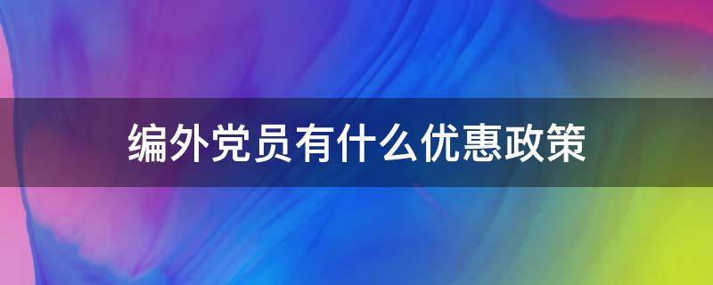 编外党员享受的优惠政策与正式党员相同。例如,可以享受就业优先权、党员子女入学优先权等。不同的地方可能会有不同的优惠政策,建议咨询当地党组织了解详情。编外党员指的是非正式党员,也称为预备党员。预备党员是指在一定时期内参加党的组织生活和党的工作,接受党的教育和锻炼,取得党员资格条件后,经党的组织批准加入中国共产党的人。