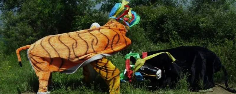 乐曲牛斗虎属于民俗。牛斗虎是一种模拟动物形体、习性的传统民间舞蹈,流传于盂县一带。整个舞蹈由2人扮演牛、2人扮演虎、1人扮演人熊,牛皮与虎皮均用布制成,披于演员身上。伴奏由大鼓、大锣、大镲演奏锣鼓点“霸王战”,具有浓郁的传统文化特色和乡土气息。