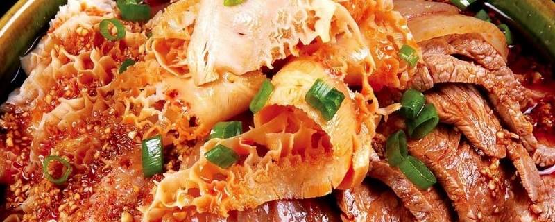 2、夫妻肺片:是一道四川成都名菜,由郭朝华、张田政夫妻创制而成。通常以牛头皮、牛心、牛舌、牛肚、牛肉为主料,进行卤制,而后切片。再配以辣椒油、花椒面等辅料制成红油浇在上面。其制作精细,色泽美观,质嫩味鲜,麻辣浓香,非常适口。