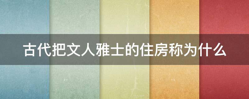 古代把文人雅士的住房称为什么