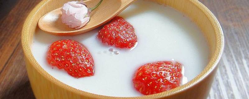 5、起泡的牛奶倒入装草莓酱的杯中即可。