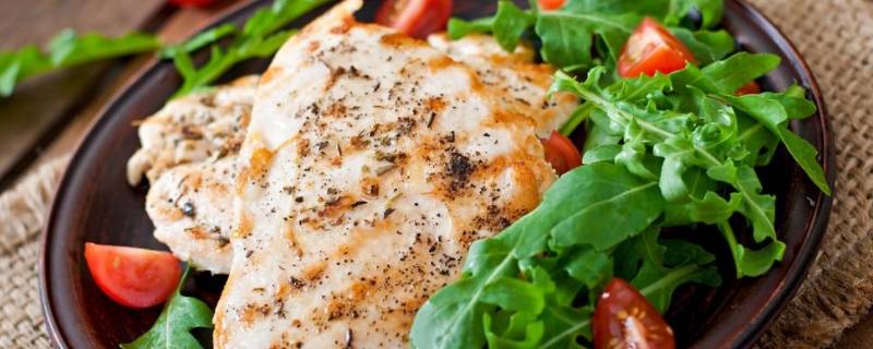 4、锅中倒入橄榄油中火烧热20秒,下腌好的鸡胸肉,两面各煎15秒左右使表面略微变色。