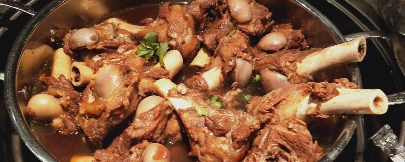 6、加入老抽调色,加入两大勺豆瓣酱,撒适量盐,大火烧开,小火慢炖2小时至肉软烂即可。