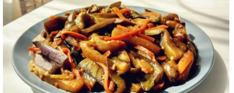 4、倒入茄条,加盐、糖、少许生抽和水。