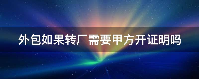 外包如果转厂需要甲方开证明,乙方是相对甲方而言,双方是合同关系,而外包则是工作任务的甲方包给外部一个公司,是承包关系,所以外包转厂需要甲方开需求证明。外包是指企业动态地配置自身和其他企业的功能和服务,并利用企业外部的资源为企业内部的生产和经营服务。
