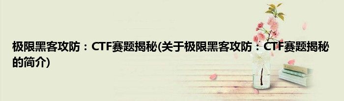 大家好,极限黑客攻防:CTF赛题揭秘,关于极限黑客攻防:CTF赛题揭秘的简介很多人还不知道,现在让我们一起来看看吧!