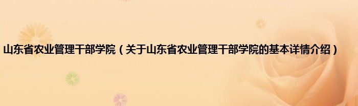 本文关于山东省农业管理干部学院的基本详情介绍就讲解完毕,希望对大家有所帮助。