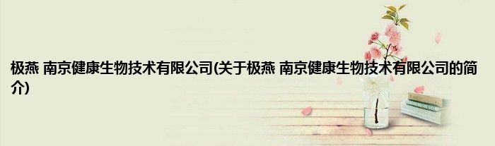 本文关于极燕 南京健康生物技术有限公司的简介就讲解完毕,希望对大家有所帮助。