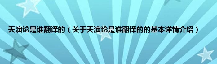 本文关于天演论是谁翻译的的基本详情介绍就讲解完毕,希望对大家有所帮助。