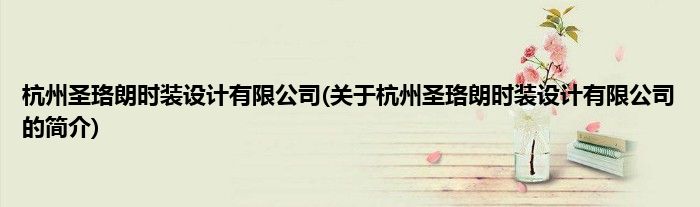 本文关于杭州圣珞朗时装设计有限公司的简介就讲解完毕,希望对大家有所帮助。