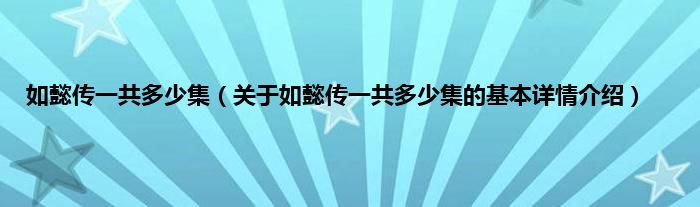 本文关于如懿传一共多少集的基本详情介绍就讲解完毕,希望对大家有所帮助。