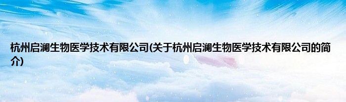 本文关于杭州启澜生物医学技术有限公司的简介就讲解完毕,希望对大家有所帮助。