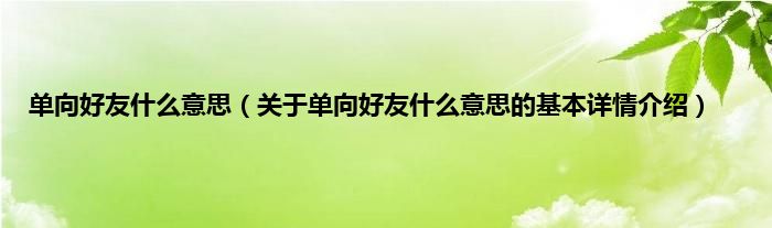 本文关于单向好友什么意思的基本详情介绍就讲解完毕,希望对大家有所帮助。