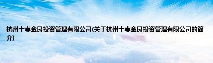 本文关于杭州十尃金艮投资管理有限公司的简介就讲解完毕,希望对大家有所帮助。
