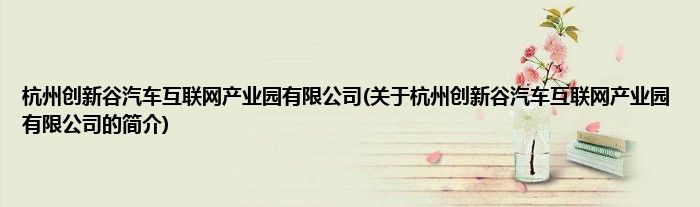 本文关于杭州创新谷汽车互联网产业园有限公司的简介就讲解完毕,希望对大家有所帮助。