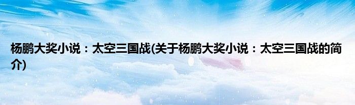 本文关于杨鹏大奖小说:太空三国战的简介就讲解完毕,希望对大家有所帮助。