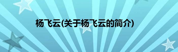 大家好,杨飞云,关于杨飞云的简介很多人还不知道,现在让我们一起来看看吧!