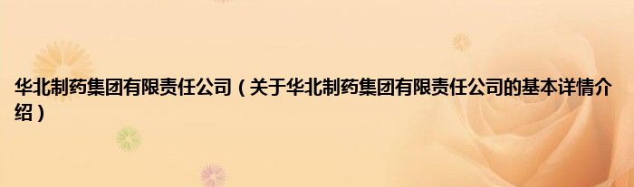 本文关于华北制药集团有限责任公司的基本详情介绍就讲解完毕,希望对大家有所帮助。