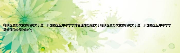 大家好,杨陵区教育文化体育局关于进一步加强全区中小学学籍管理的意见,关于杨陵区教育文化体育局关于进一步加强全区中小学学籍管理的意见的简介很多人还不知道,现在让我们一起来看看吧!
