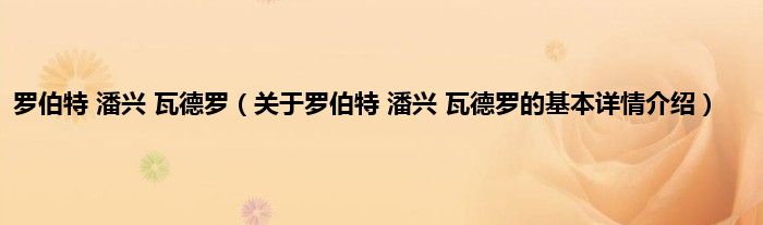 本文关于罗伯特 潘兴 瓦德罗的基本详情介绍就讲解完毕,希望对大家有所帮助。