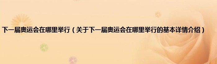本文关于下一届奥运会在哪里举行的基本详情介绍就讲解完毕,希望对大家有所帮助。