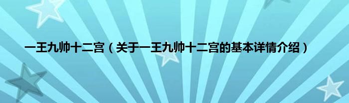本文关于一王九帅十二宫的基本详情介绍就讲解完毕,希望对大家有所帮助。