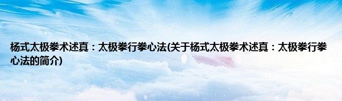 本文关于杨式太极拳术述真:太极拳行拳心法的简介就讲解完毕,希望对大家有所帮助。