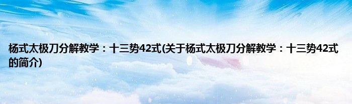 杨式太极刀分解教学:十三势42式(关于杨式太极刀分解教学:十三势42式的简介)
