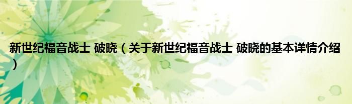 本文关于新世纪福音战士 破晓的基本详情介绍就讲解完毕,希望对大家有所帮助。