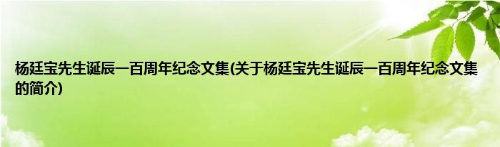 大家好,杨廷宝先生诞辰一百周年纪念文集,关于杨廷宝先生诞辰一百周年纪念文集的简介很多人还不知道,现在让我们一起来看看吧!