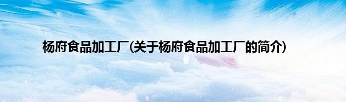 大家好,杨府食品加工厂,关于杨府食品加工厂的简介很多人还不知道,现在让我们一起来看看吧!