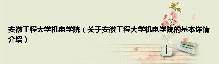 本文关于安徽工程大学机电学院的基本详情介绍就讲解完毕,希望对大家有所帮助。