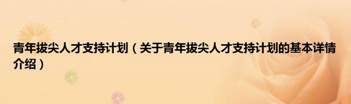 本文关于青年拔尖人才支持计划的基本详情介绍就讲解完毕,希望对大家有所帮助。