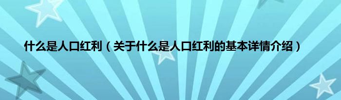 本文关于什么是人口红利的基本详情介绍就讲解完毕,希望对大家有所帮助。