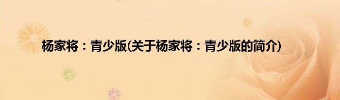 本文关于杨家将:青少版的简介就讲解完毕,希望对大家有所帮助。