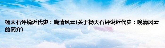 本文关于杨天石评说近代史:晚清风云的简介就讲解完毕,希望对大家有所帮助。