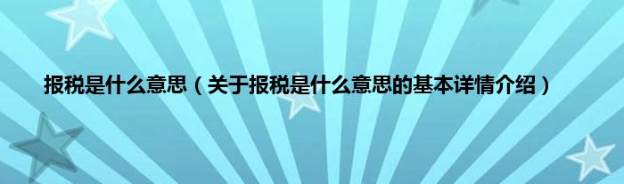 本文关于报税是什么意思的基本详情介绍就讲解完毕,希望对大家有所帮助。