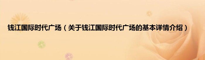 本文关于钱江国际时代广场的基本详情介绍就讲解完毕,希望对大家有所帮助。