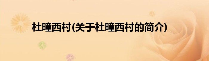 大家好,杜疃西村,关于杜疃西村的简介很多人还不知道,现在让我们一起来看看吧!