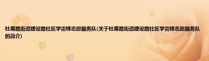 1、 杜甫路街道建设路社区学雷锋志愿服务队是由巩义市杜甫路街道学雷锋志愿服务队领导下的志愿团体。